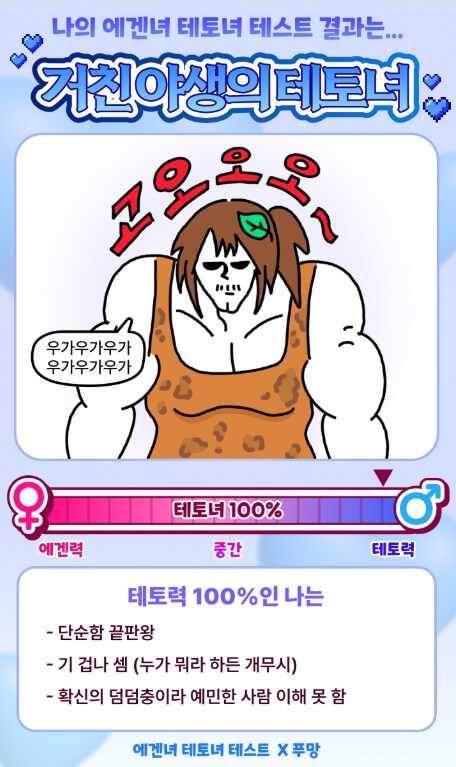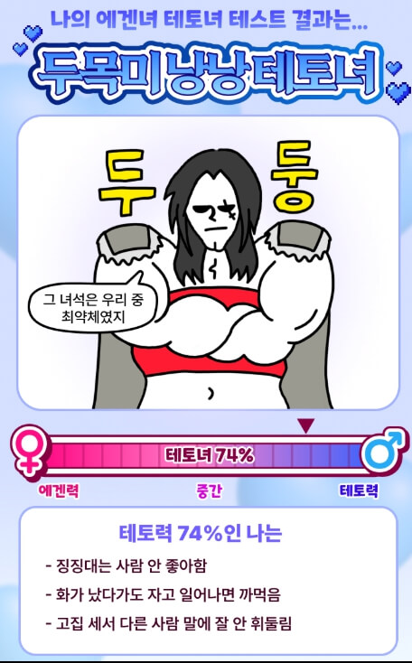 저도 테스트 해본 결과가 나왔는데 저는 테토녀가 나왔습니다.