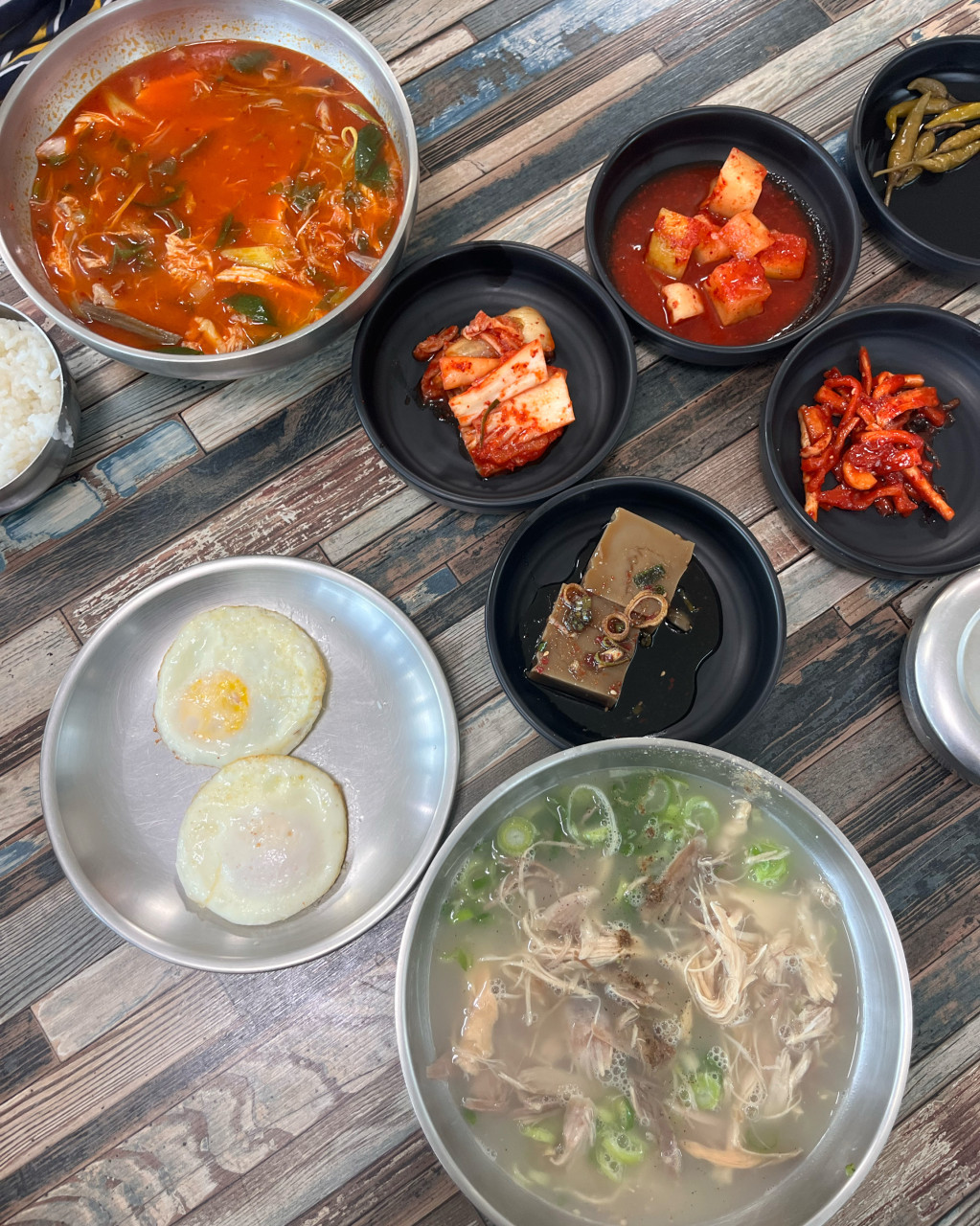 푸짐한 닭 해장국과 파당 무침의 환상 궁합. 아침 식사로 강추!