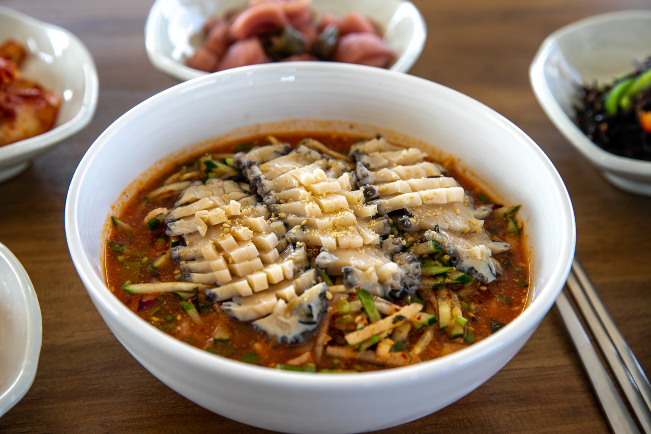 48시간 끓인 깊은 국물의 전복 설렁탕. 백년초 냉면도 비주얼, 맛 둘 다 완벽.